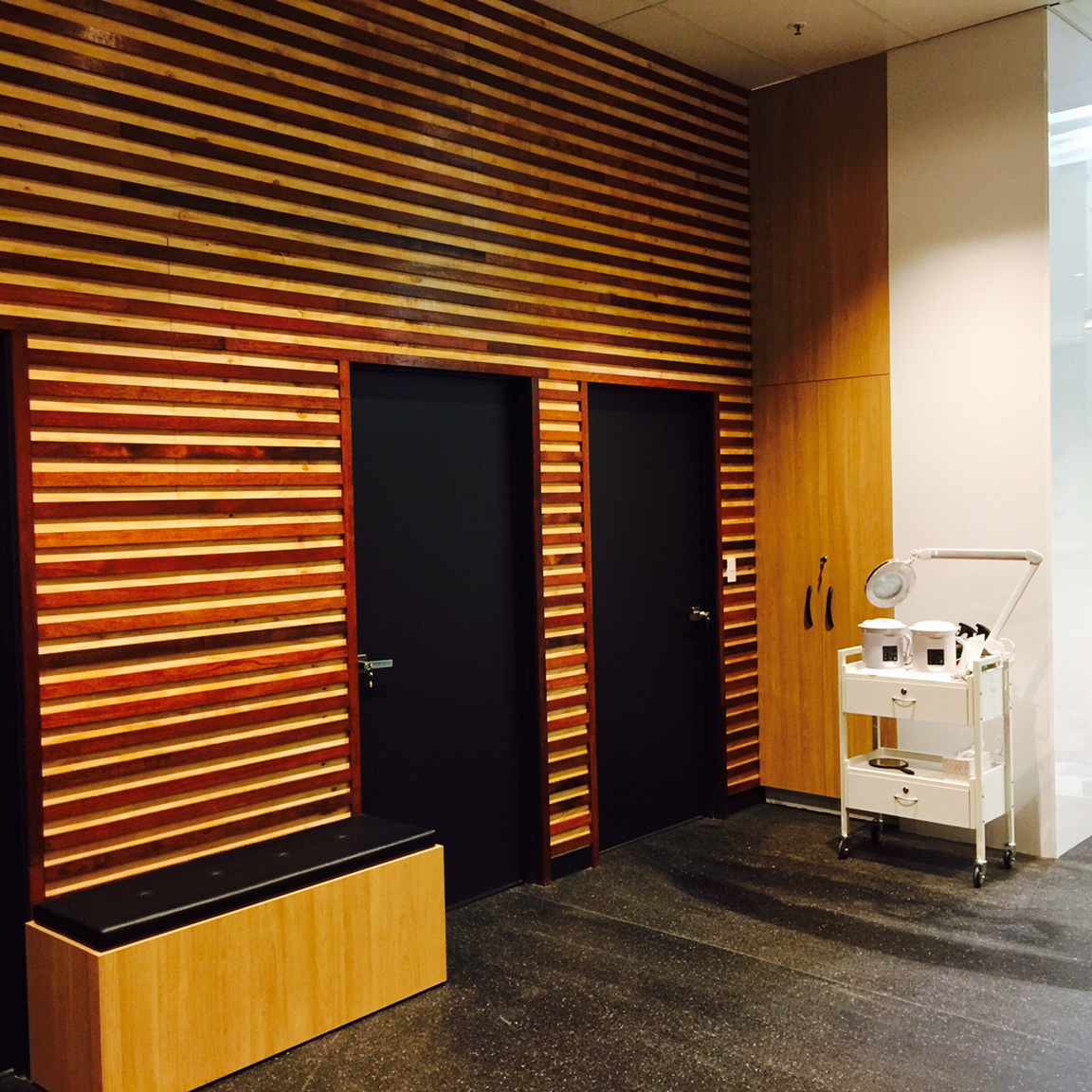 Located at Darwin, the Brows and Beauty is a one-stop beauty salon. Hong Yuan Construction customized design scheme for it according to its natural beauty theme. Using the natural log for the basic color tone matched with the large scale open spaces, and also designed the private spaces for the VIP services as well. In this way, every time when come into the room, customers would experience refreshing feeling. And the warm color in the shop would also bring people relaxed emotion.